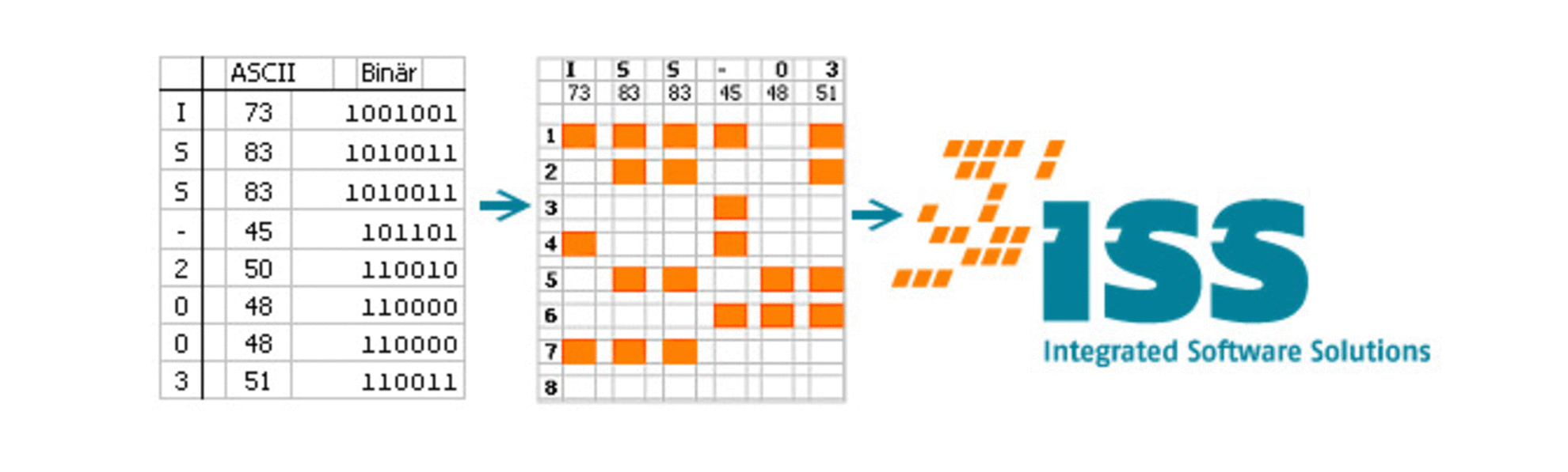 Was bedeuten eigentlich die Pixel in unserem Logo? Hier sind unser Firmennamen und das Jahr der Firmengründung binär verschlüsselt.